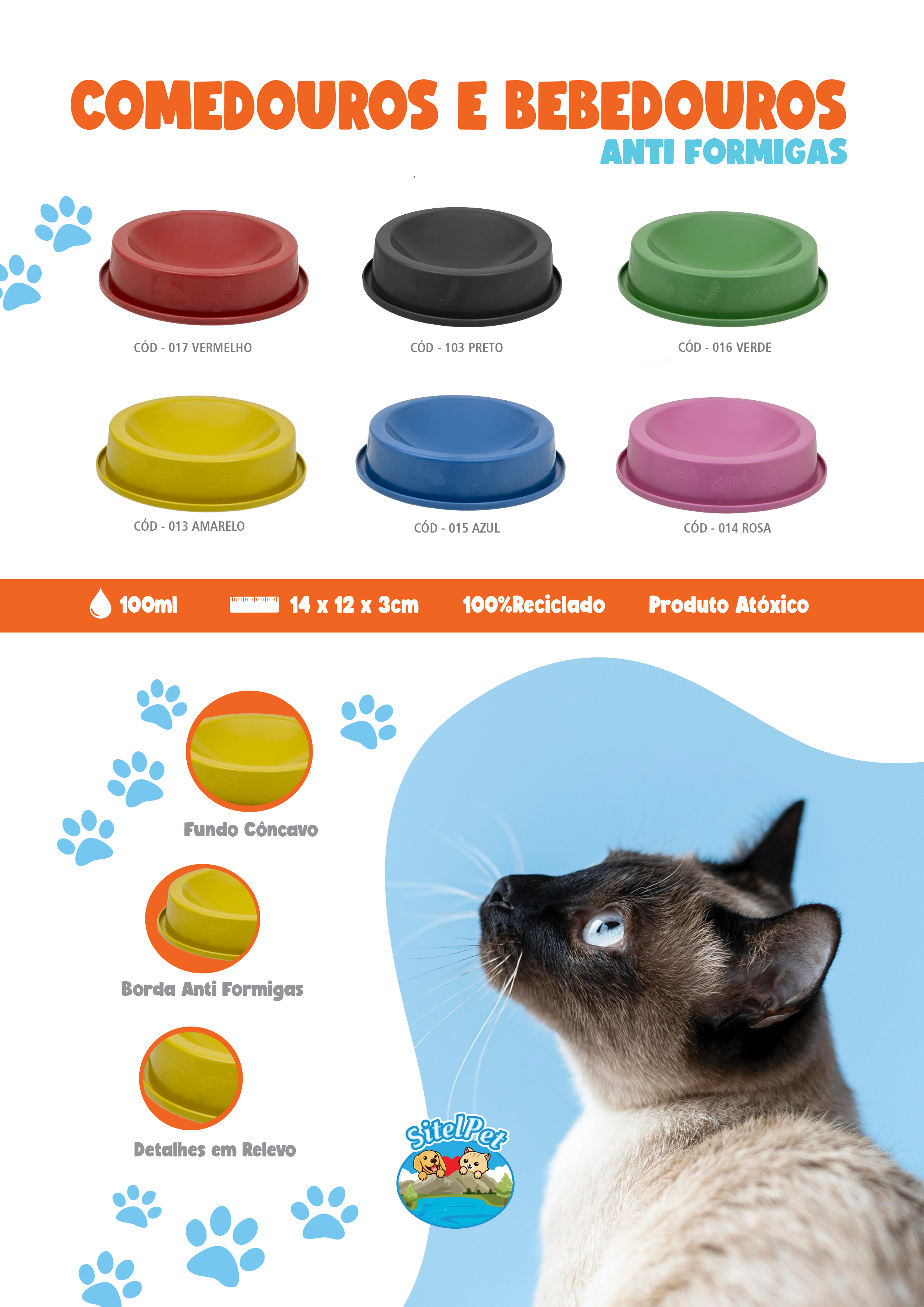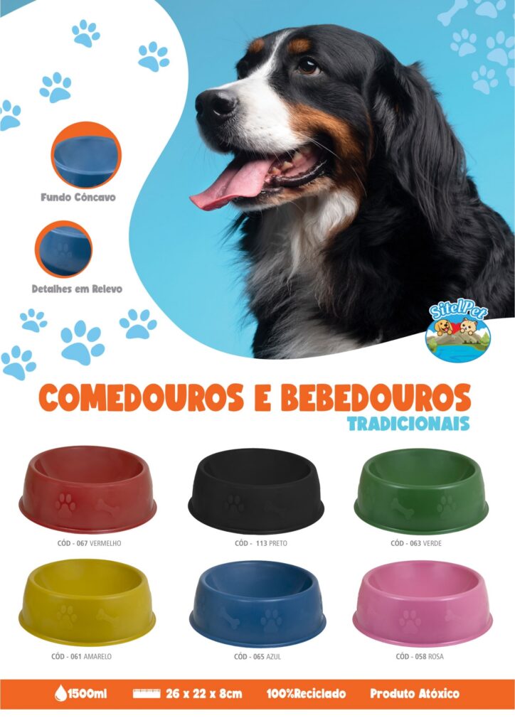 Pensando no conforto do seu pet e na sua economia, desenvolvemos um produto diferenciado, seu formato foi desenhado para que tanto o alimento sólido como o líquido fiquem armazenados sempre no centro do recipiente até o final, facilitando a vida do seu pet na alimentação.